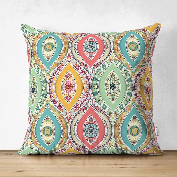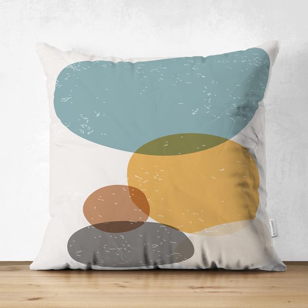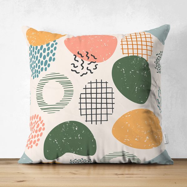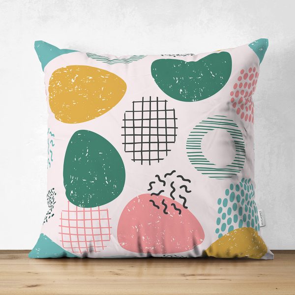 Çift Taraflı Renkli Zeminde Onedraw Çizimli Oval Desenli Dijital Baskılı Modern Süet Yastık Kılıfı