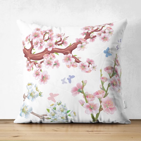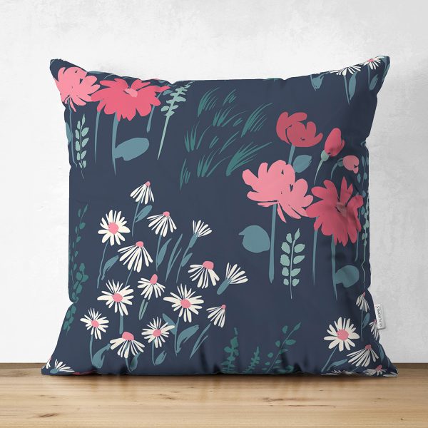 Çift Taraflı Renkli Zeminde Onedraw Çizimli Çiçek Desenli Dijital Baskılı Modern Süet Yastık Kılıfı