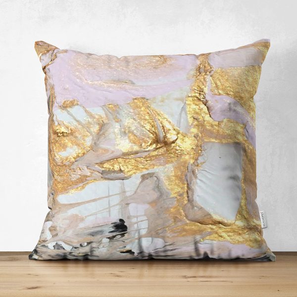 Çift Taraflı Gold Detaylı Soyut Çizimli Dijital Baskılı Modern Süet Yastık Kırlent Kılıfı