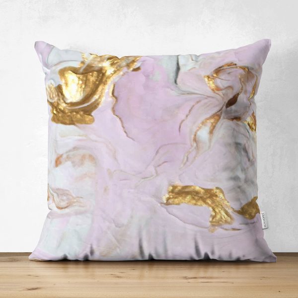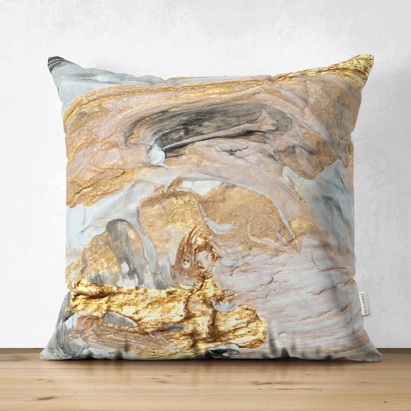 Çift Taraflı Gold Detaylı Modern Motifler Dijital Baskılı Modern Süet Yastık Kırlent Kılıfı