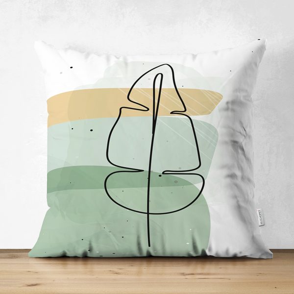 Çift Taraflı Renkli Zeminde Onedraw Çizimli Dijital Baskılı Modern Süet Yastık Kırlent Kılıfı