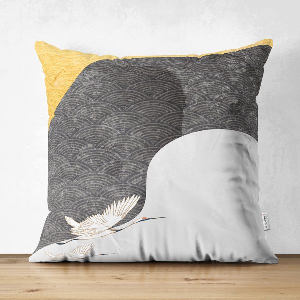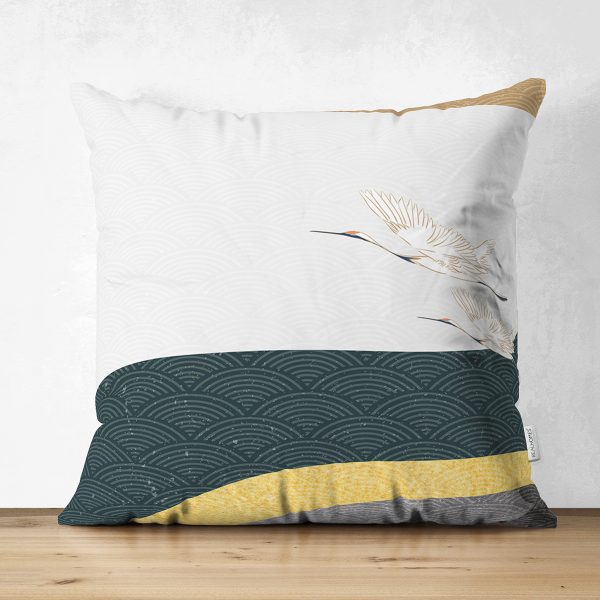 Çift Taraflı Renkli Zeminde Leylek Desenli Dijital Baskılı Modern Süet Yastık Kırlent Kılıfı
