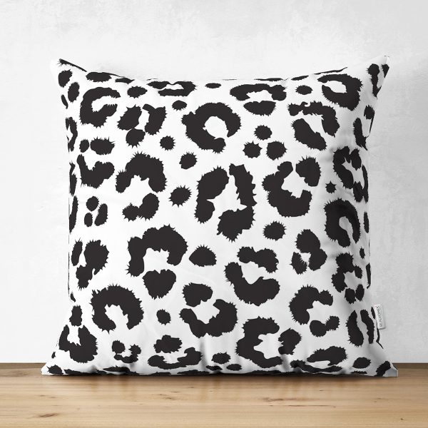 Çift Taraflı Siyah Zemin Üzerinde Onedraw Çizimli Yaprak Motifli Süet Yastık Kırlent Kılıfı
