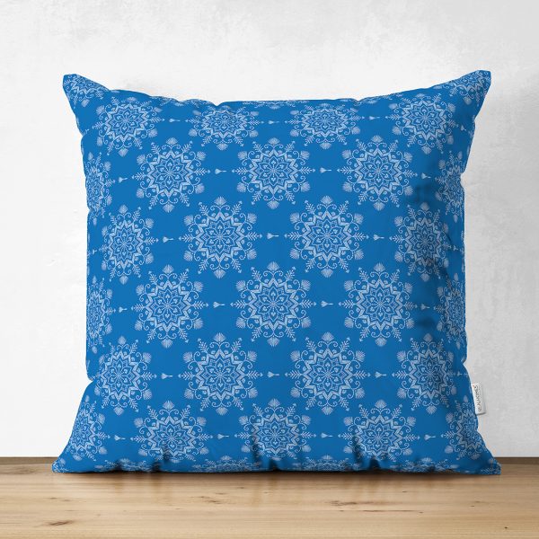 Çift Taraflı Mavi Zeminli Kartanesi Desenli Dijital Baskılı Modern Süet Yastık Kırlent Kılıfı