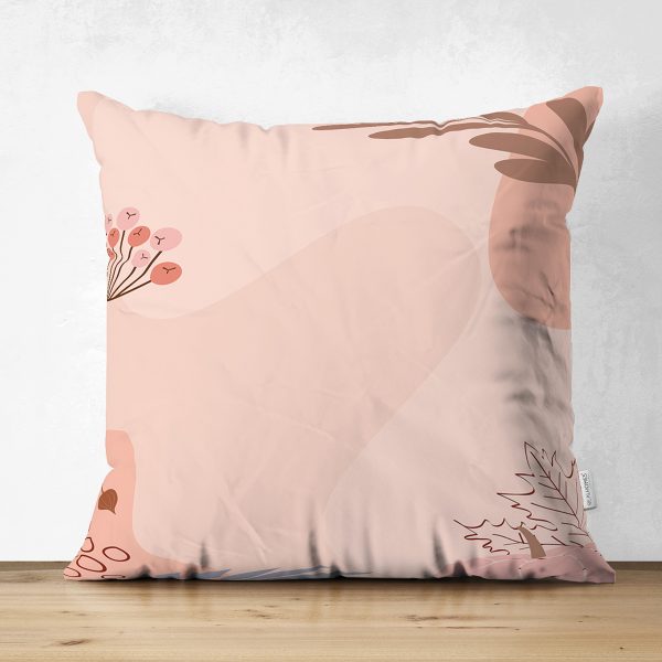 Çift Taraflı Ekru Zeminli Yaprak Motifler Dijital Baskılı Modern Süet Yastık Kırlent Kılıfı