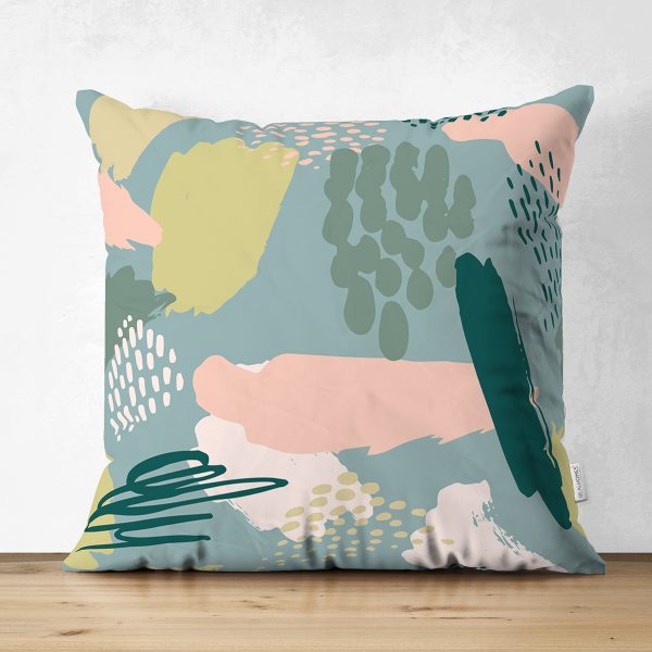 Çift Taraflı Renkli Zemin Üzerinde Soyut Çizimli Dijital Baskılı Modern Süet Yastık Kırlent Kılıfı