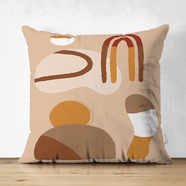 Çift Taraflı Ekru Zeminde Geometrik Zeminler Dijital Baskılı Modern Süet Yastık Kırlent Kılıfı