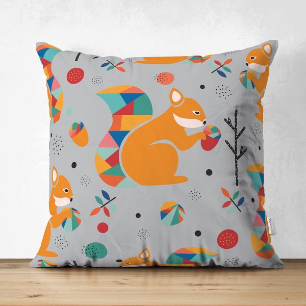 Realhomes Çift Taraflı Fındık Kurdu Sincap Dijital Baskılı Modern Süet Kırlent Kılıfı