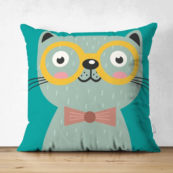 Realhomes Çift Taraflı Renkli Kedi Dijital Baskılı Modern Süet Kırlent Kılıfı