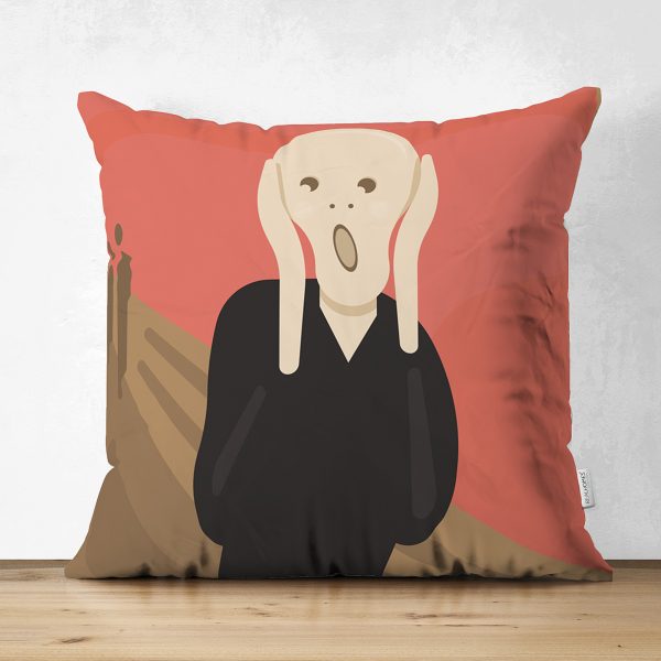 Edvard Munch-Çığlık Motifli Çift Taraflı Özel Tasarım Süet Kırlent Kılıfı