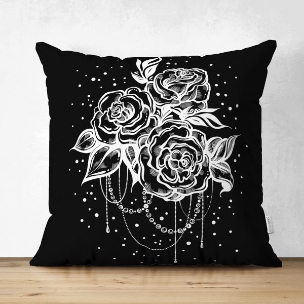 Siyah Zeminde Gül Çift Taraflı Dijital Baskılı Modern Süet Yastık Kılıfı