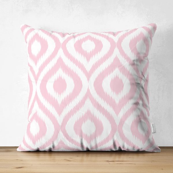Çift Taraflı Özel Tasarım Pembe İkat Desenli Dijital Baskılı Süet Yastık Kırlent Kılıfı