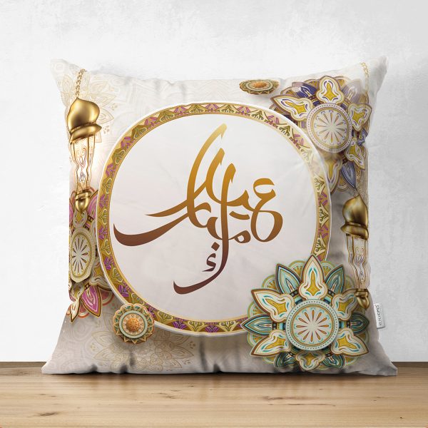 Realhomes Dini Motifli Çift Taraflı Özel Tasarım Dijital Baskılı Süet Kırlent Kılıfı