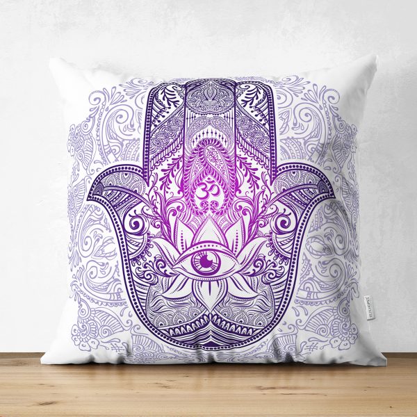 Mandala İçinde Fatma’nın Bereket Eli Motifli Çift Taraflı Süet Kırlent Kılıfı