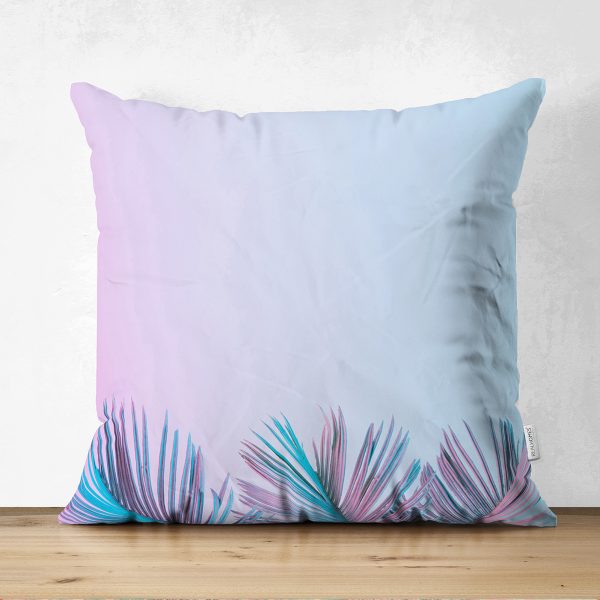 Büyüleyici Renklerde Tropikal Yaprak Motifli Çift Taraflı Özel Tasarım Modern Süet Kırlent Kılıfı
