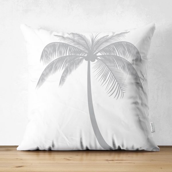 Beyaz Zeminde Gri Palmiye Desenli Modern Çift Taraflı Süet Yastık Kılıfı