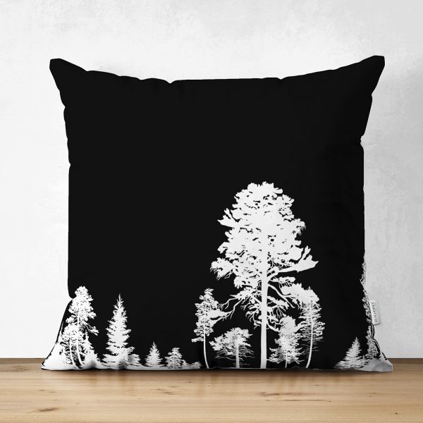 Realhomes Siyah Zeminde Siyah Ağaç Tasarımlı Çift Taraflı Dekoratif Süet Yastık Kılıfı