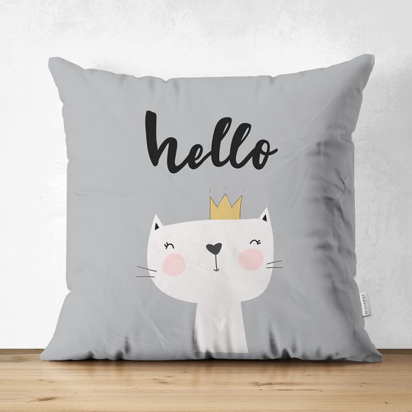 Çift Taraflı Hello Kedicik Özel Tasarımlı Bebek Odası Süet Yastık Kırlent Kılıfı