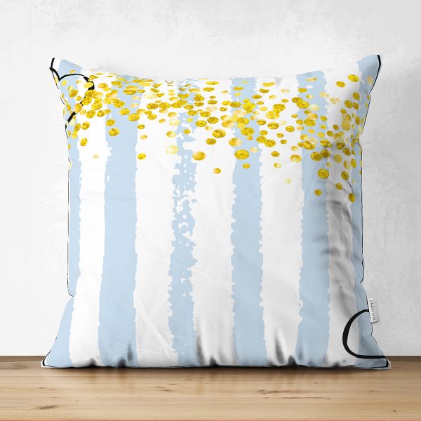 Çift Taraflı Mavi Beyaz Çizgili Sarı Puanlı Temalı Çocuk Odası Süet Yastık Kırlent Kılıfı