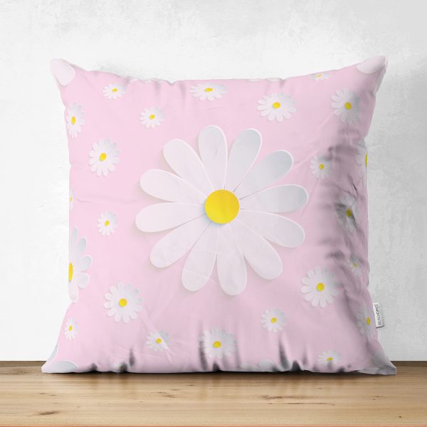 Realhomes Çift Taraflı Papatya Desenli Dijital Baskılı Modern Süet Yastık Kılıfı