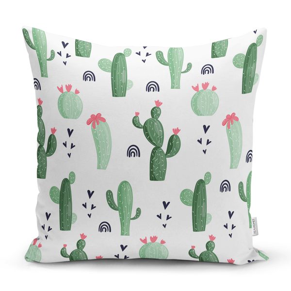 Beyaz Zemin Üzerinde Kaktüs Desenli Dijital Baskılı Modern Yastık Kırlent Kılıfı