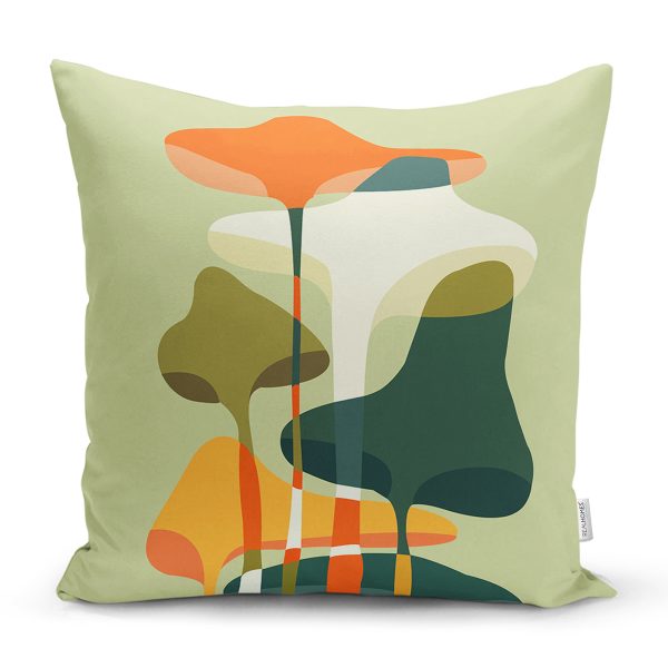 4’lü Renkli Zemin Deniz Yosunu Çizimli Dijital Baskılı Modern Kırlent Kılıfı Seti