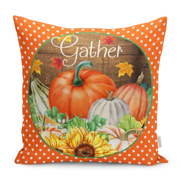 Kabak Temalı Turuncu Puantiye Tasarımlı Modern Yastık Kırlent Kılıfı