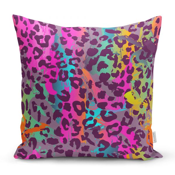 Realhomes Renkli Leopar Desenli Dijtal Baskılı Modern Yastık Kırlent Kılıfı