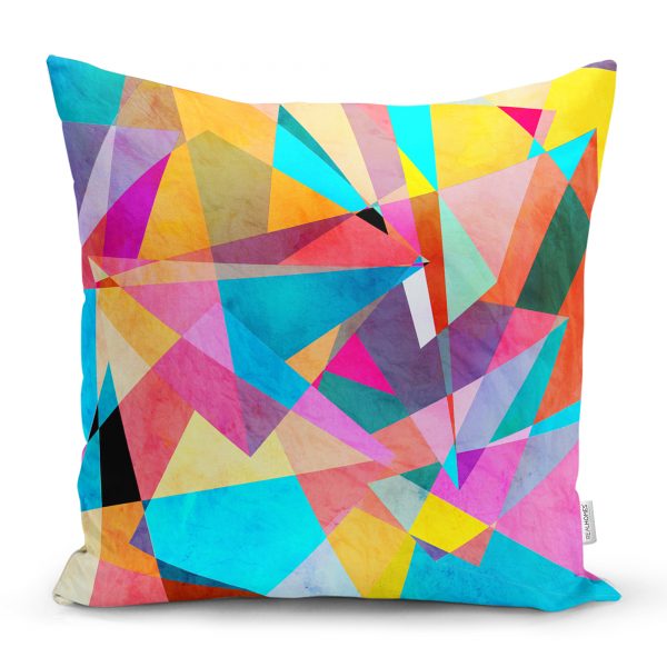 Realhomes Renkli Üçgenler Dijital Baskılı Modern Yastık Kırlent Kılıfı