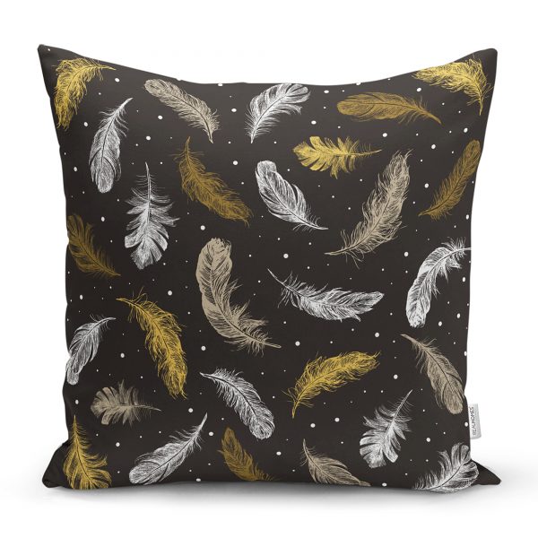 Realhomes Siyah Zeminde Gold tüyler Dijital Baskılı Modern Yastık Kırlent Kılıfı