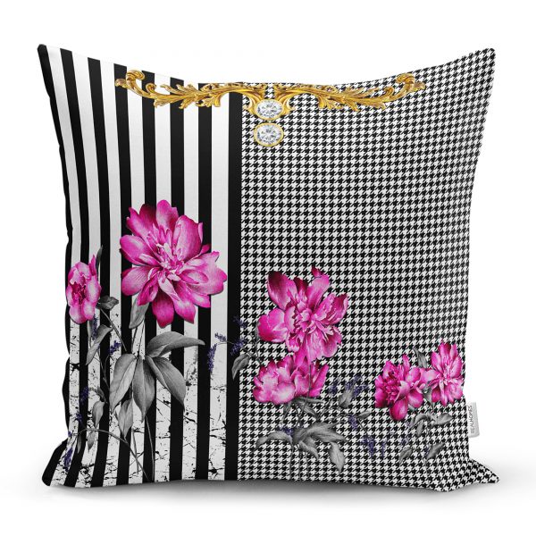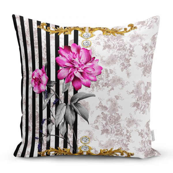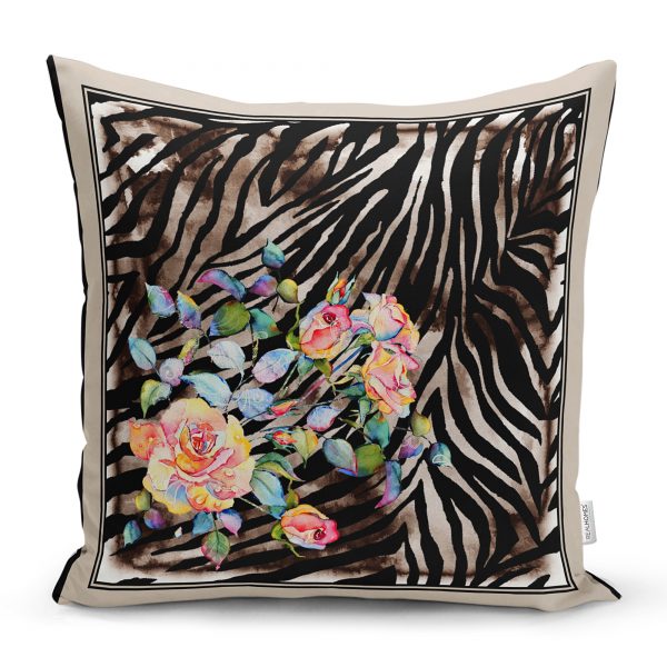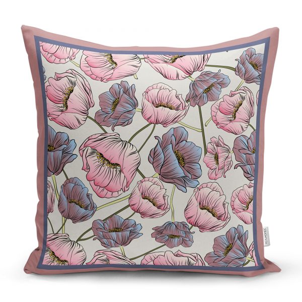 Çiçek Desenli Dijital Baskılı Yastık Kırlent Kılıfı