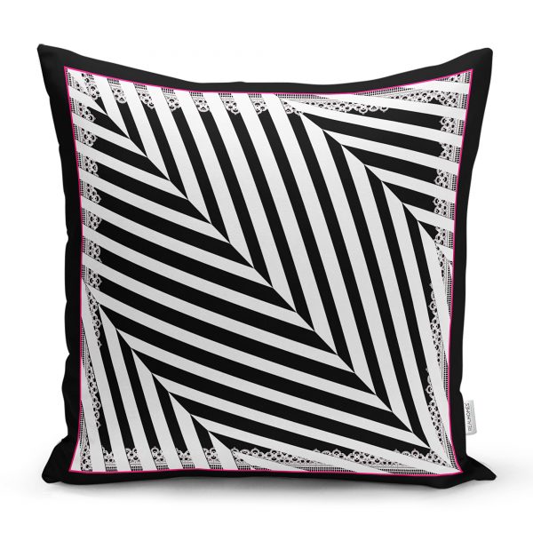 RealHomes Siyah Beyaz W Harfli Yastık Kırlent Kılıfı