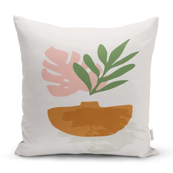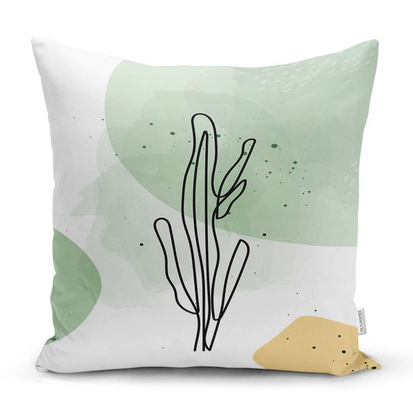 Soft Renkli Onedraw Yaprak Temalı Dijital Baskılı Modern Yastık Kırlent Kılıfı