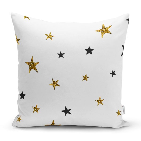 Beyaz Zemin Üzerinde Gold Yıldızlı Dijital Baskılı Modern Yastık Kırlent Kılıfı