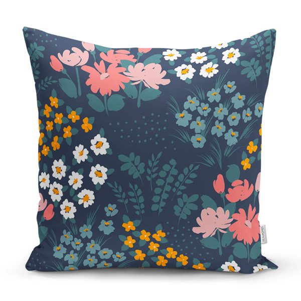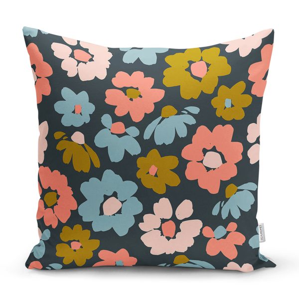 Rengarenk Zeminde Onedraw Çizimli Çiçek Desenli Dijital Baskılı Modern Kırlent Kılıfı