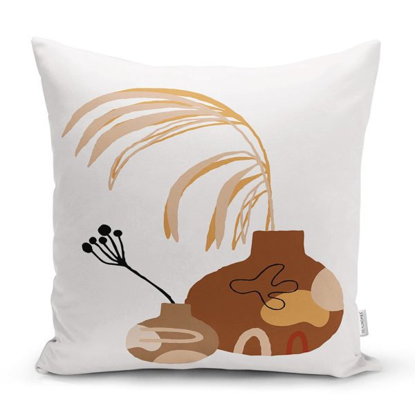 Beyaz Zeminde Onedraw Çizimli Vazo Desenli Dijital Baskılı Modern Kırlent Kılıfı