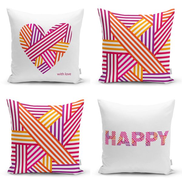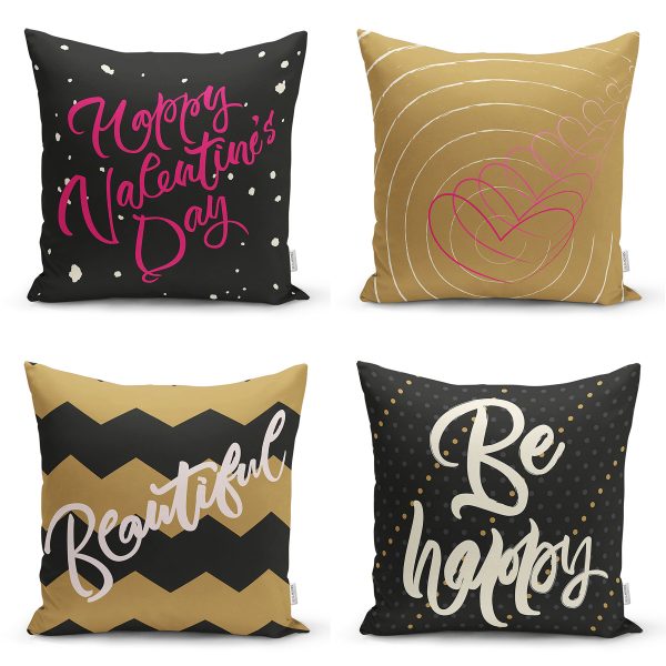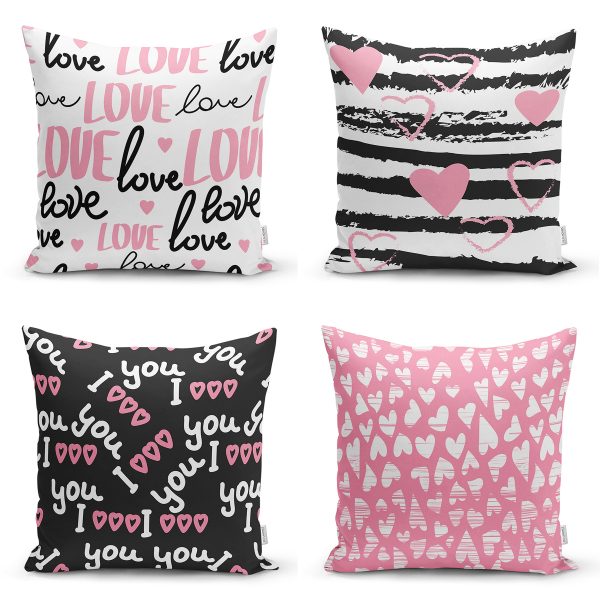 4’lü Sevgililer Günü Konseptli Özel Tasarım Modern Kombin Yastık Kırlent Kılıf Seti