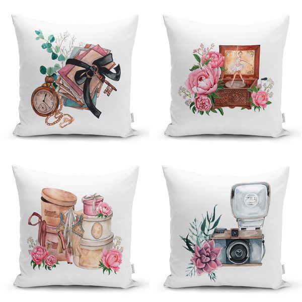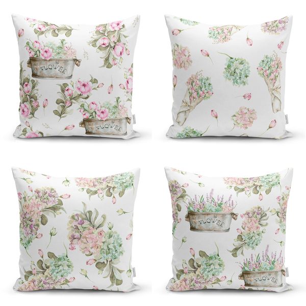4’lü Çiçek Buketleri Tasarımlı Dijital Baskılı Modern Kırlent Kılıfı Seti