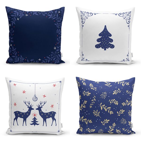4’lü Lacivert Yılbaşı Temalı Dijital Baskılı Modern Kırlent Kılıfı Seti