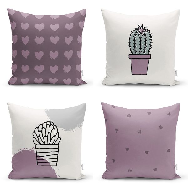 4’lü Kalp & Kaktüs Özel Tasarım Dijital Baskılı Modern Kırlent Kılıfı Seti