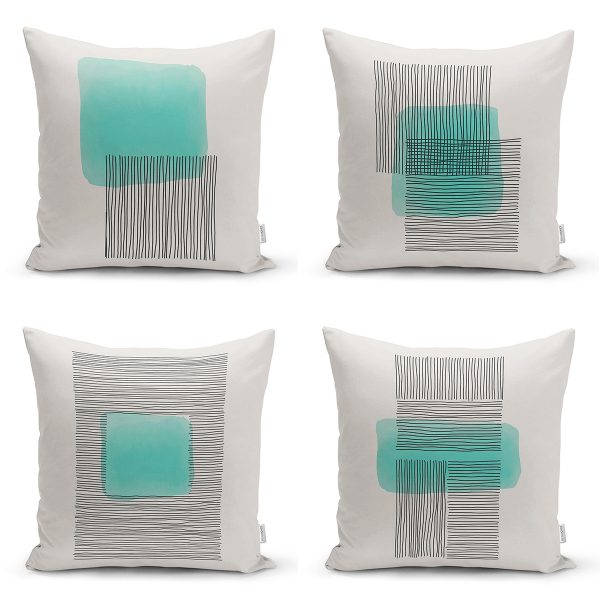 Geometrik Ve Leopar Desen Tasarımlı Modern Dijital Baskılı 4’lü Yastık Kırlent Kılıf Seti