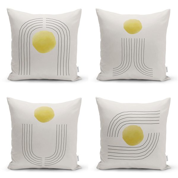 4’lü Koyu Fildişi Renkli Onedraw Tasarımlı Dijital Baskılı Modern Kırlent Kılıfı Seti