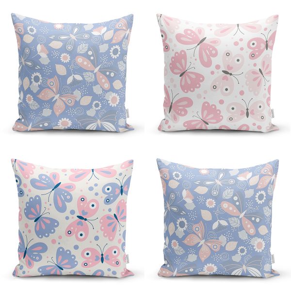 4’lü Renkli Zemin Kelebek Desenli Dijital Baskılı Modern Kırlent Kılıfı Seti