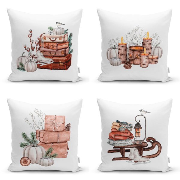 4’lü Kış Temalı Özel Tasarım Dijital Baskılı Modern Kırlent Kılıfı Seti
