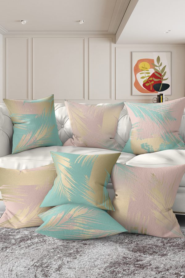 7’li Soft Renkli Yaprak Tasarımlı Dijital Baskılı Kırlent Kılıfı Seti