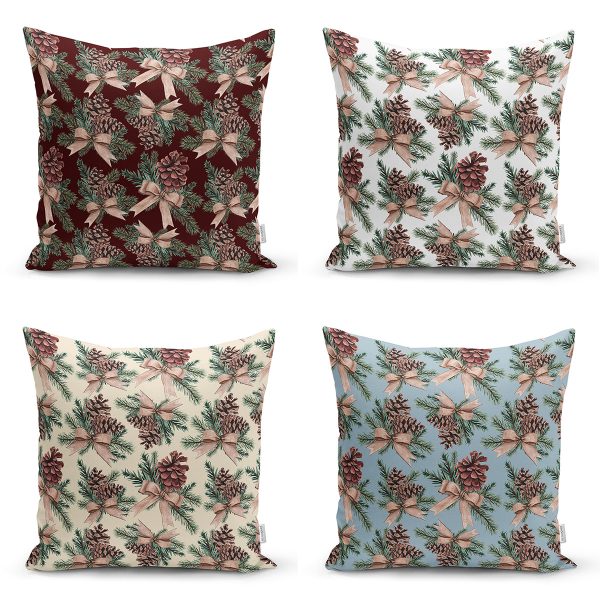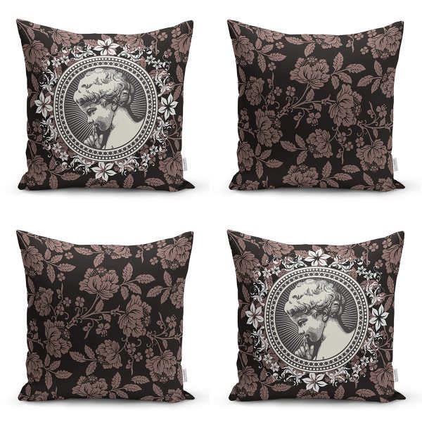 7’li Özel Tasarım Gold Detaylı Yaprak Tasarımlı Dijital Baskılı Kırlent Kılıfı Seti