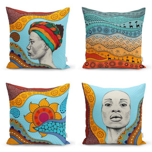 7’li Renkli Kumlama Zeminli Özel Tasarım Dijital Baskılı Kırlent Kılıfı Seti