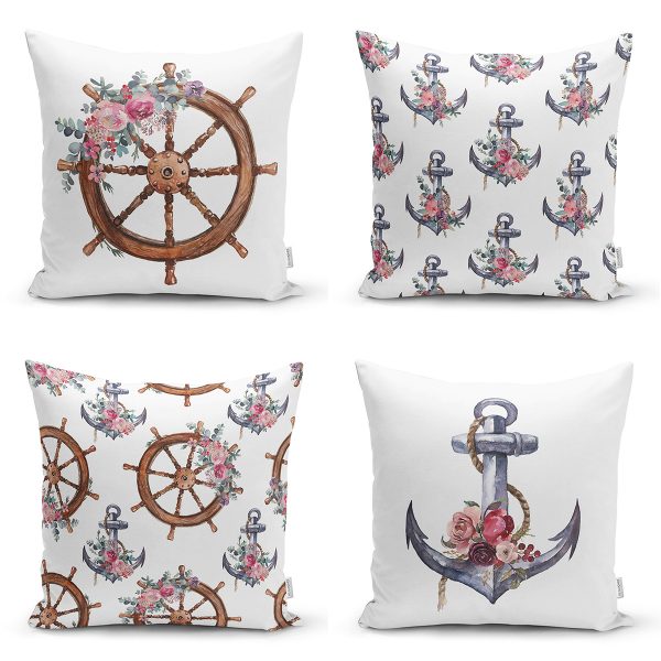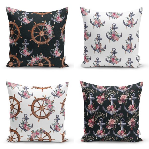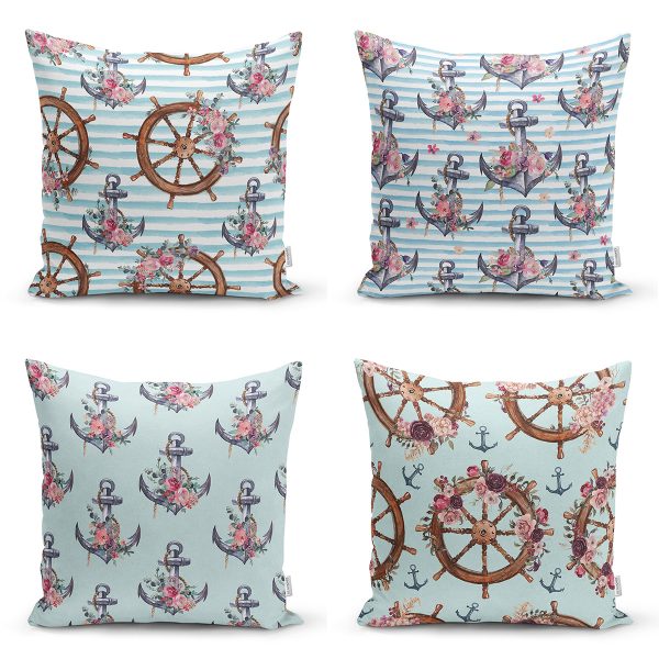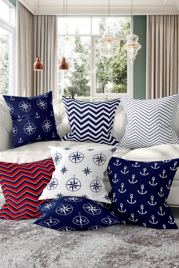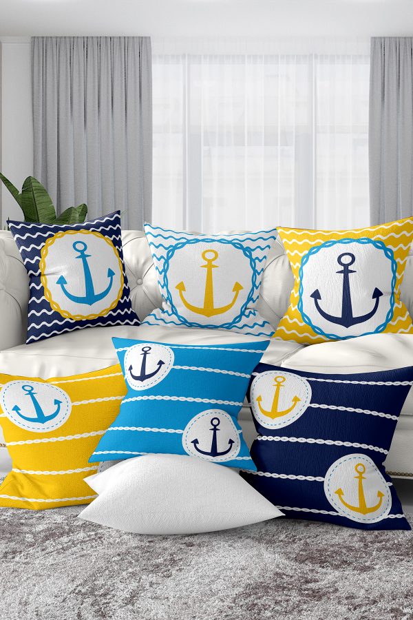 7’li Özel Tasarım Renkli Çapa Desenli Dijital Baskılı Kırlent Kılıfı Seti