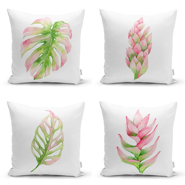 7’li Renkli Egzotik Yaprak Tasarımlı Dijital Baskılı Kırlent Kılıfı Seti