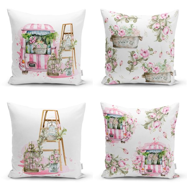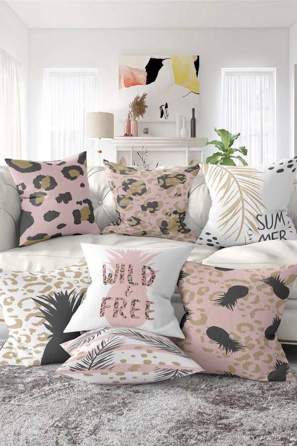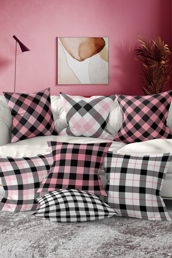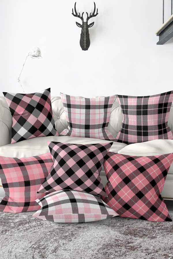 7’li Pembe Ekose Tasarımlı Dijital Baskılı Kırlent Kılıfı Seti
